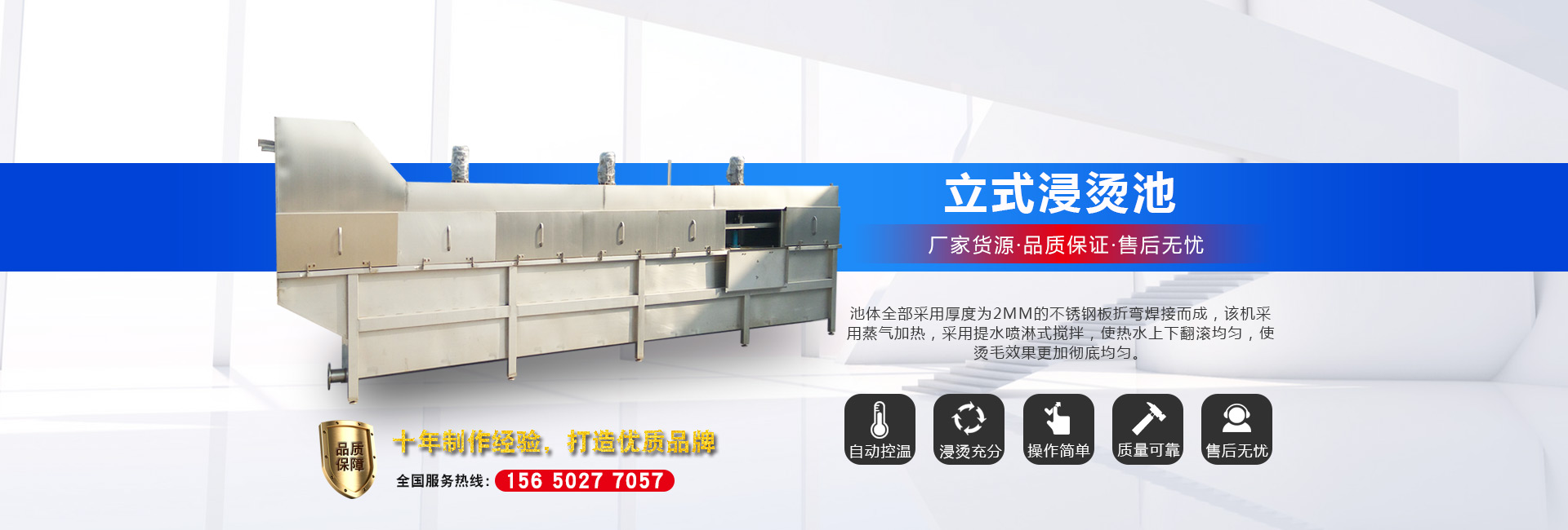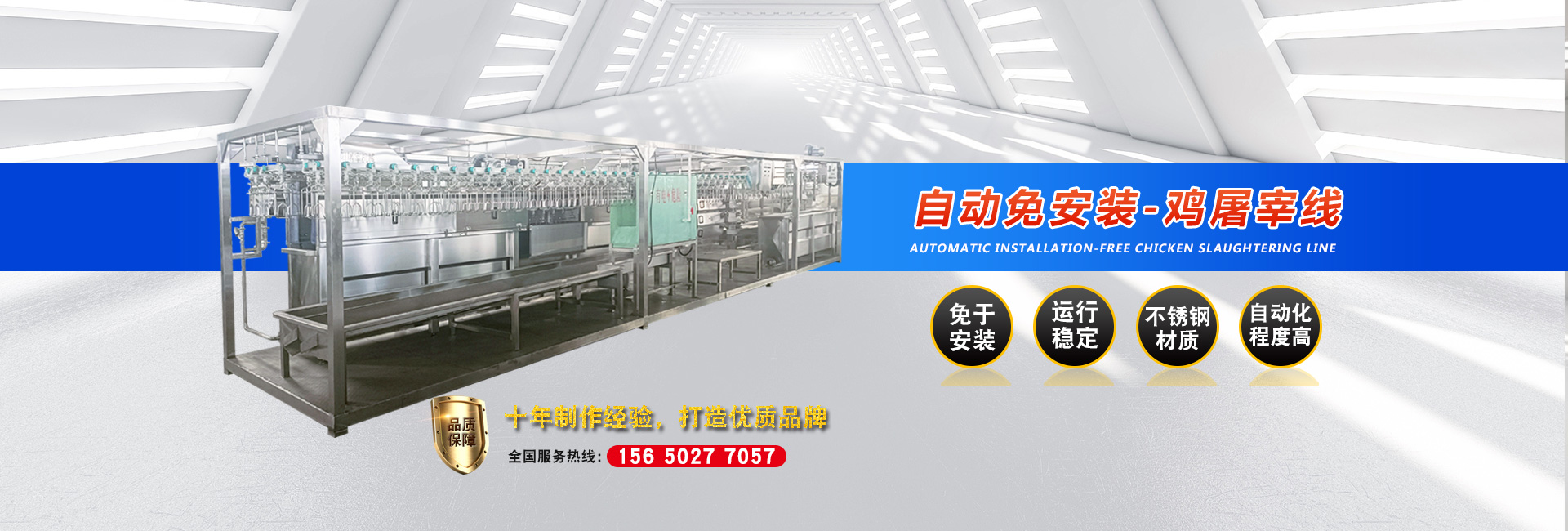 公司長期與國內(nèi)外屠宰加工企業(yè)合作,走引進(jìn)——消化——?jiǎng)?chuàng)新和自主研發(fā)相結(jié)合的道路,在國內(nèi)外同類產(chǎn)品的基礎(chǔ)上,不斷更新和改造。公司主要設(shè)備有:A字型立式脫毛機(jī)、臥式脫毛機(jī)、強(qiáng)力噴淋機(jī)、松毛機(jī)、浸燙池、螺旋預(yù)冷機(jī)、禽籠清洗機(jī)、電暈機(jī)、兔扯皮機(jī)、兔割前爪/后爪機(jī)、剝胗機(jī)、自動洗鉤機(jī)、螺旋燙爪機(jī)、雞爪脫皮機(jī)、分割輸送帶等屠宰用設(shè)備。其中,公司獨(dú)力發(fā)明生產(chǎn)設(shè)計(jì)的“電動調(diào)節(jié)脫毛機(jī)”及“自動控水控溫浸燙池”順利通過知識產(chǎn)權(quán)局的實(shí)質(zhì)性審查。公司所生產(chǎn)的設(shè)備 可與國外同類產(chǎn)品配套使用,設(shè)備遠(yuǎn)銷阿爾及利亞、澳大利亞等中東、非州等并建立了長期穩(wěn)定的合作關(guān)系。